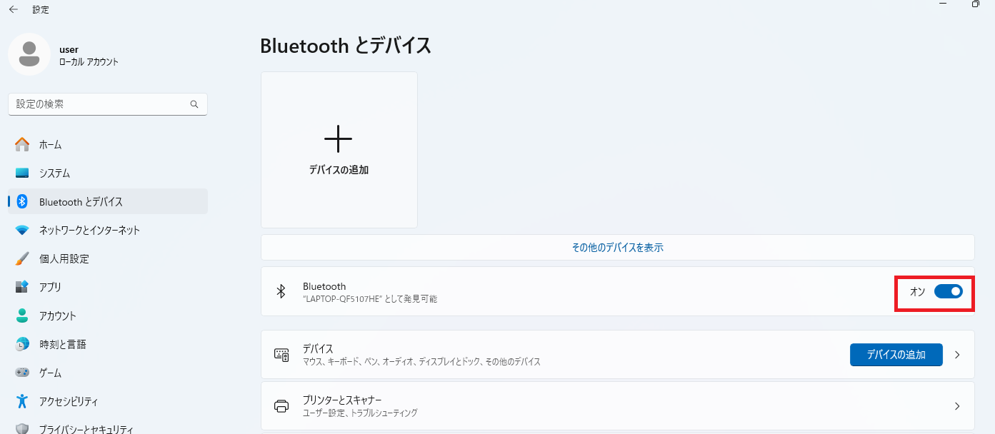 • 設定 → Bluetoothとデバイス → 「デバイスの追加」をクリック